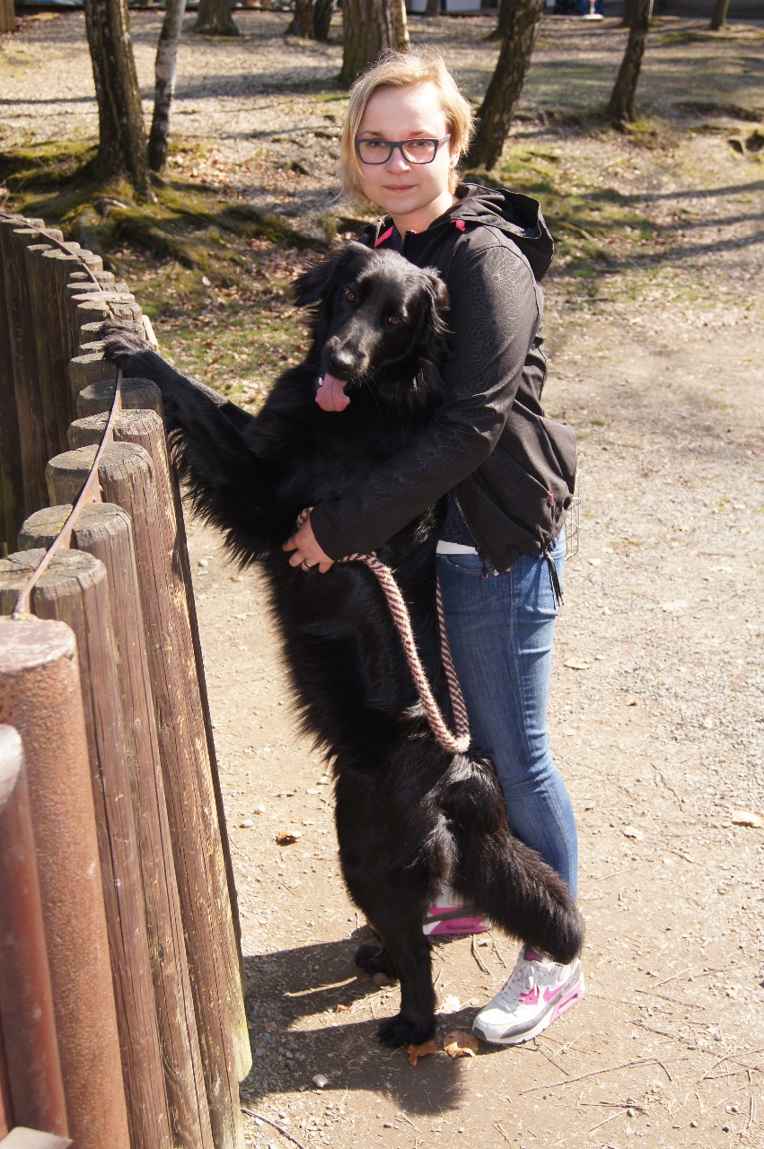 O velikonočních svátcích jsme si udělali dva výlety, s Jackií jsme včera absolvovali procházku mandloňovým sadem v Hustopečích a dnes jsme s Brann vyrazili do Zoo Olomouc na socializační vycházku ;) Jackie se chovala přiměřeně svému věku a ostatních pejsků si nevšímala, takže mohla s košíkem lítat, kde se jí zlíbilo. Brann naopak dneska strávila celou vycházku na vodítku mezi extrémním množstvím lidí, spoustou psů a pachů, které nikdy necítila. No, její ocas se udržel dole asi první půlhodinku a pak se vrátil do své standardní pozice, takže to asi mluvilo za vše. Nejvíce se jí asi líbilo u sobů a jelenů sika, kteří chvíli přemýšleli, jestli před tím stvořením mají utíkat, nebo je ignorovat. U výběhu s levhartem usoudila, že se tam vyskočí podívat, ale ten tam naštěstí nebyl. Musím říct, že celý pobyt zvláda sebejistě a tak trochu i nad moje očekávání ;)